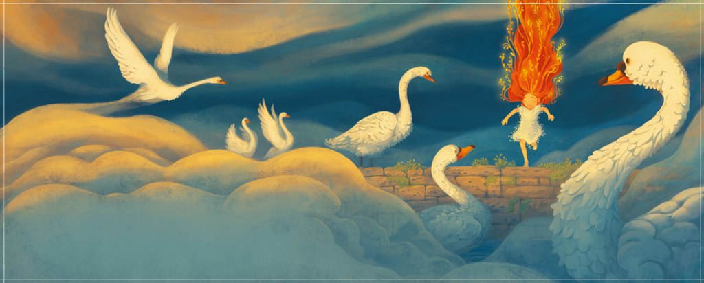 I absolutely love Nicola Bernardelli’s beautiful illustrations – they really are something else! They perfectly convey the story’s magic and wonder and help bring the mythical island of Hy Brasil to life. And it’s just exquisite the way that Fia’s flame-red hair streams behind her, the tendrils mixed with golden flowers and stardust!